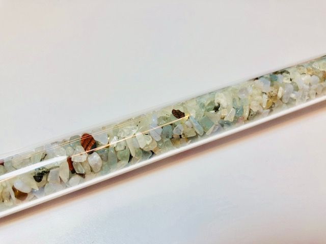 Dieser Energiestab mit ECHTEN Edelsteinen, ist nicht nur wunderschön und hochenergetisch, sondern auch besonders wirkungsvoll. In diesem Stab sind echter Aquamarin, Chalcedon und Regenbogenmondstein enthalten. Er ist extra für die Chakrenarbeit bzw. Arbeit am Halschakra konzipiert worden, um dieses zu öffnen, zu stärken bzw. dort Blockaden zu lösen!