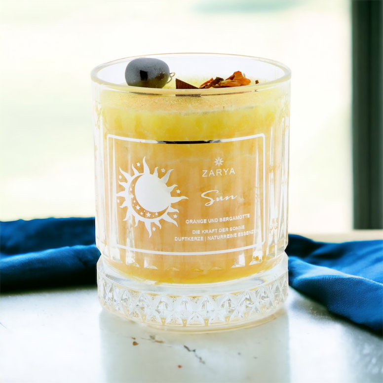 Diese Kerze sorgt dafür, dass wir von innen heraus strahlen und ein Magnet für Erfolg und Liebe werden. Sie reinigt die Aura und sorgt für gute Laune. Sie spendet Geborgenheit, Harmonie und stärkt zudem die Vitalität.