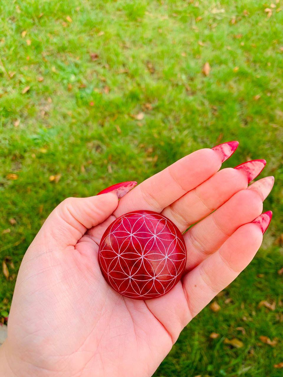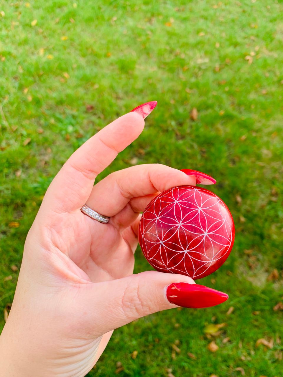 Die Energie und Urkraft der Blume des Lebens können Sie mit diesem Handschmeichler aufnehmen. Sehr gut geeignet in Stresssituationen, bei Vorstellungsgesprächen, bei der Meditation etc. Einfach in der Hand hin und her bewegen, sich beruhigen lassen und ins Urvertrauen, die Leichtigkeit und in die Selbstsicherheit finden. Die Energie bewirkt Ruhe, Ordnung und Struktur.